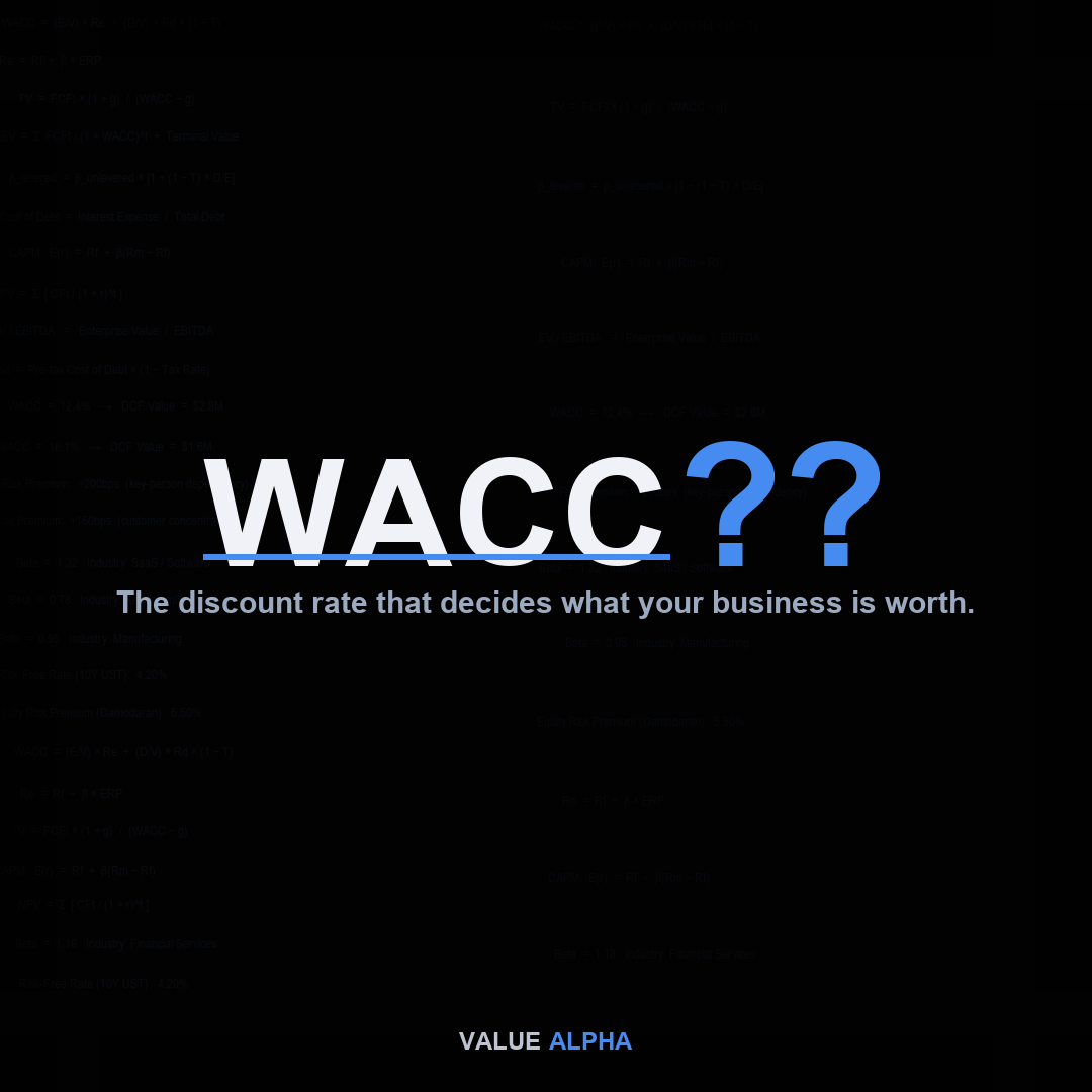 ValueAlpha runs the same WACC-calibrated DCF calculations that institutional buyers use β drawing on industry beta benchmarks, current rate environments, and size-adjusted risk premiums for private companies. Before you sit across the table from a buyer, it's worth knowing what rate they're likely to plug in, and what you can do about it.